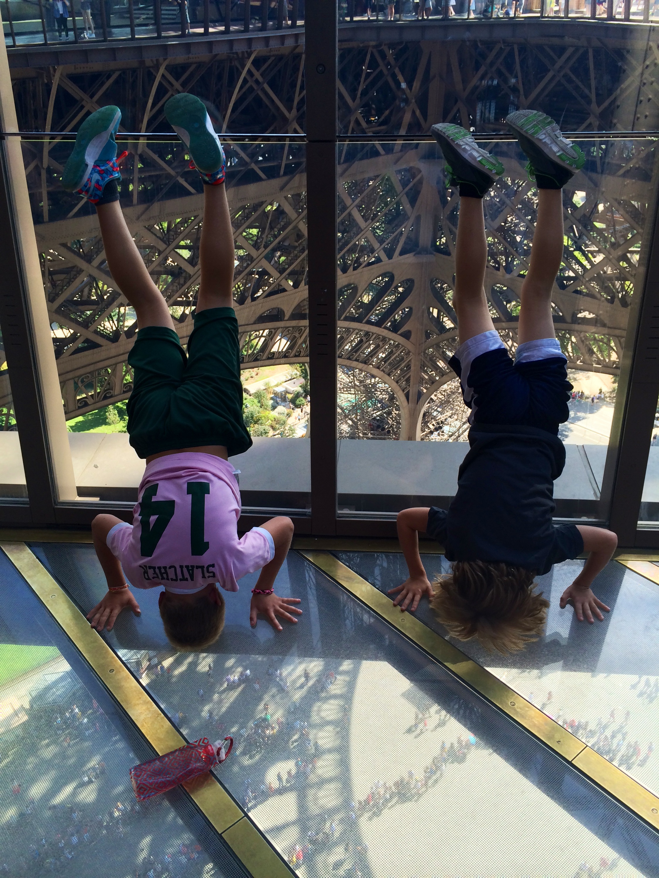 Today was the big Tour Eiffel day… really fun for all of us, as none of us had ever been to the very top. The multiple never-ending (even with tickets!) elevator lines were bearable just because of the thrill of being up high. Even my cynical nine year old, Ernest, said it lived up to his expectations. He REALLY loved the glass floor on the “second” floor, goofing around above the snaking lines of the poor saps who didn’t have advance tickets.