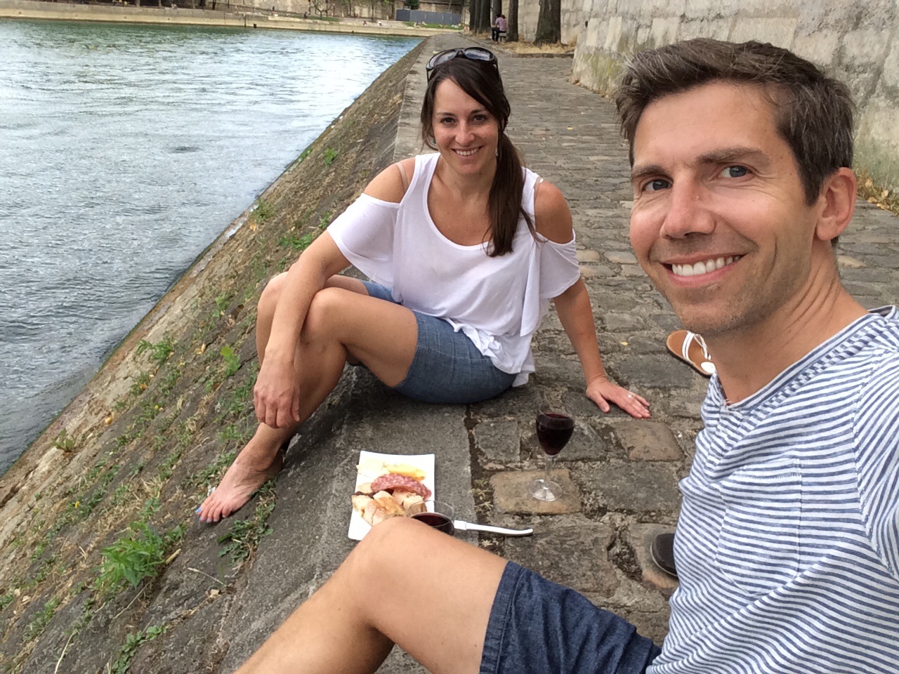 Aside from the obvious, we had several other highlights from today: Fritz HAD to have a Paris Saint-Germain (PSG) soccer jersey (let’s just say that traipsing around the Champs Elysée was NOT a highlight for me… but it made him really happy), both boys LOVED the cool (but weirdly controlled, timed, and staff-supervised) playground at Les Halles, and best of all, we adults pulled off the ultimate in Romantic Paris clichés: wine and charcuterie on the banks of the Seine. Our boys were safely tucked away in our Île St. Louis apartment, delighting in their well-deserved bit of screen time, while we delighted in some Médoc and treats from the treasure of a fromagerie around the corner. It was just lovely.