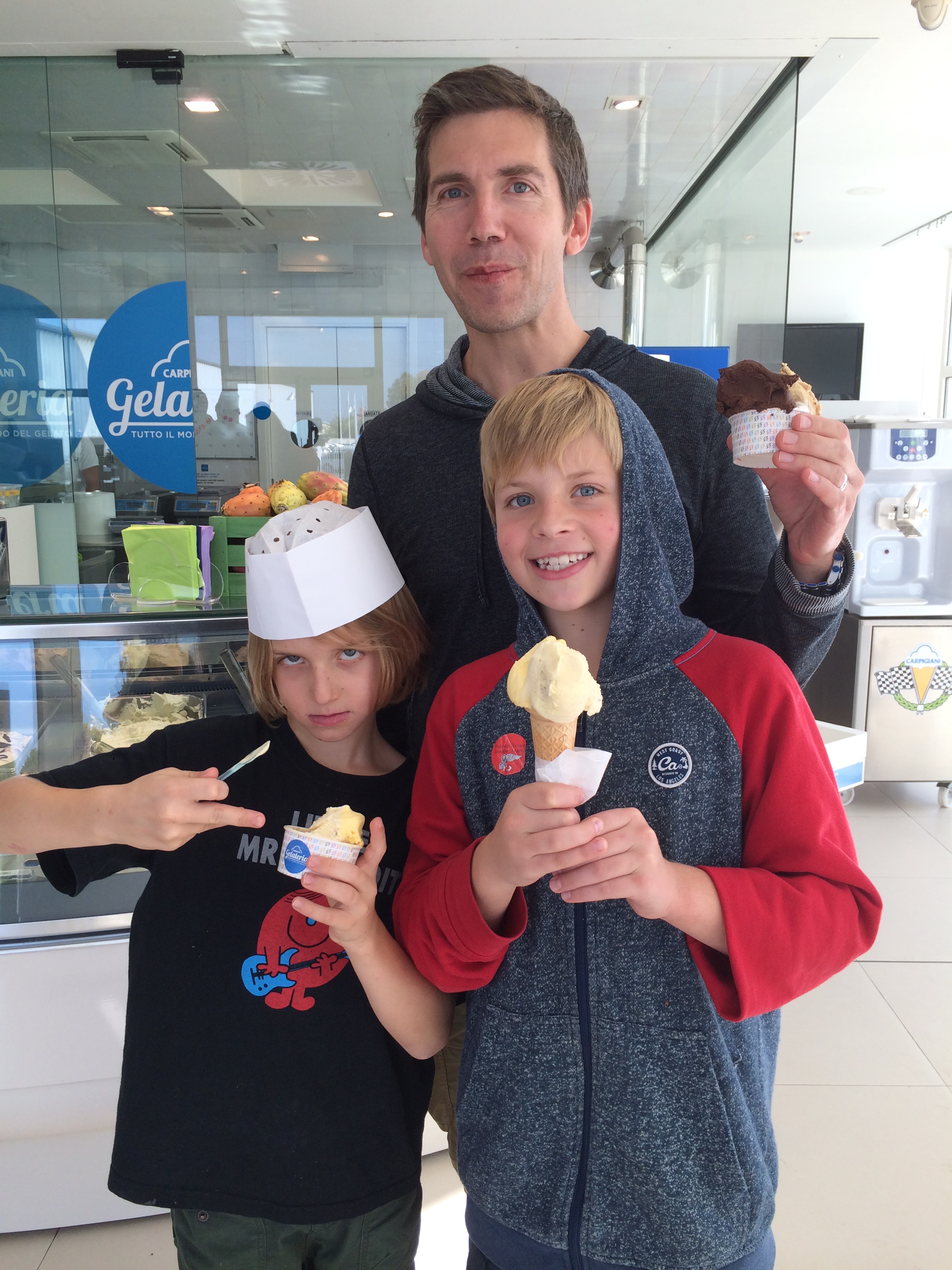MILAN. Well, sadly we didn’t manage to get into Milan itself, given our delayed departure, but we had a thrilling start to the trip anyway. We were able to catch one of our favorite bands in concert – the Dave Matthews Band – and lucked out big time. Full of impressive talent, the band always puts on an energetic and fun show. We were able to see the band members up close as they came on and off the stage, and several of them fist-bumped, shook hands or even hugged the boys… and in doing so, created two new fans-for-life. The drummer, Carter Beauford, was especially kind and generous – he went out of his way to chat with them and gave them each a pair of his drumsticks. Really special. The rest of Milan will have to wait for another visit, as will Verona, which we had to cancel this time when the concert opportunity arose. We will get back to those two cities!