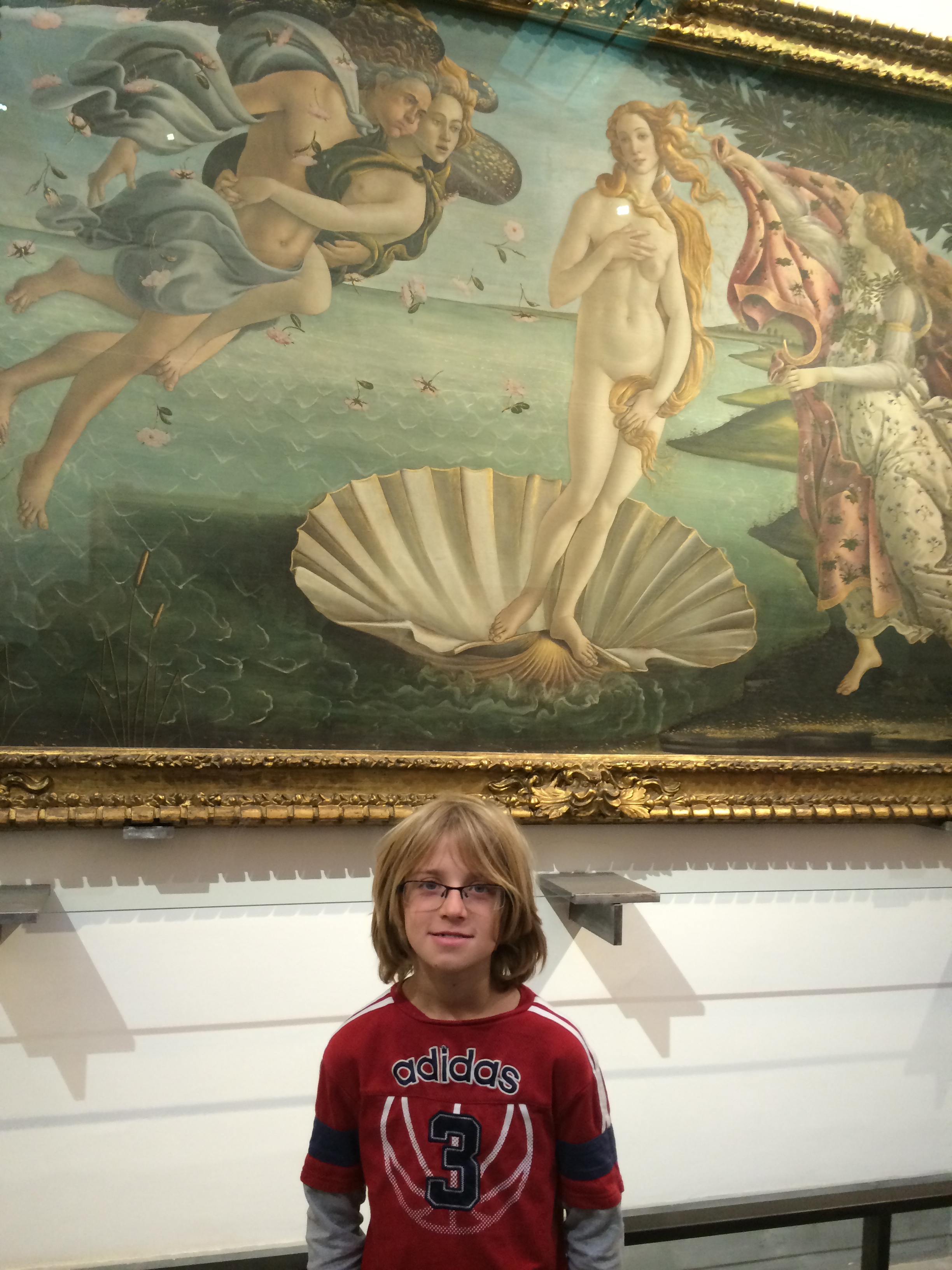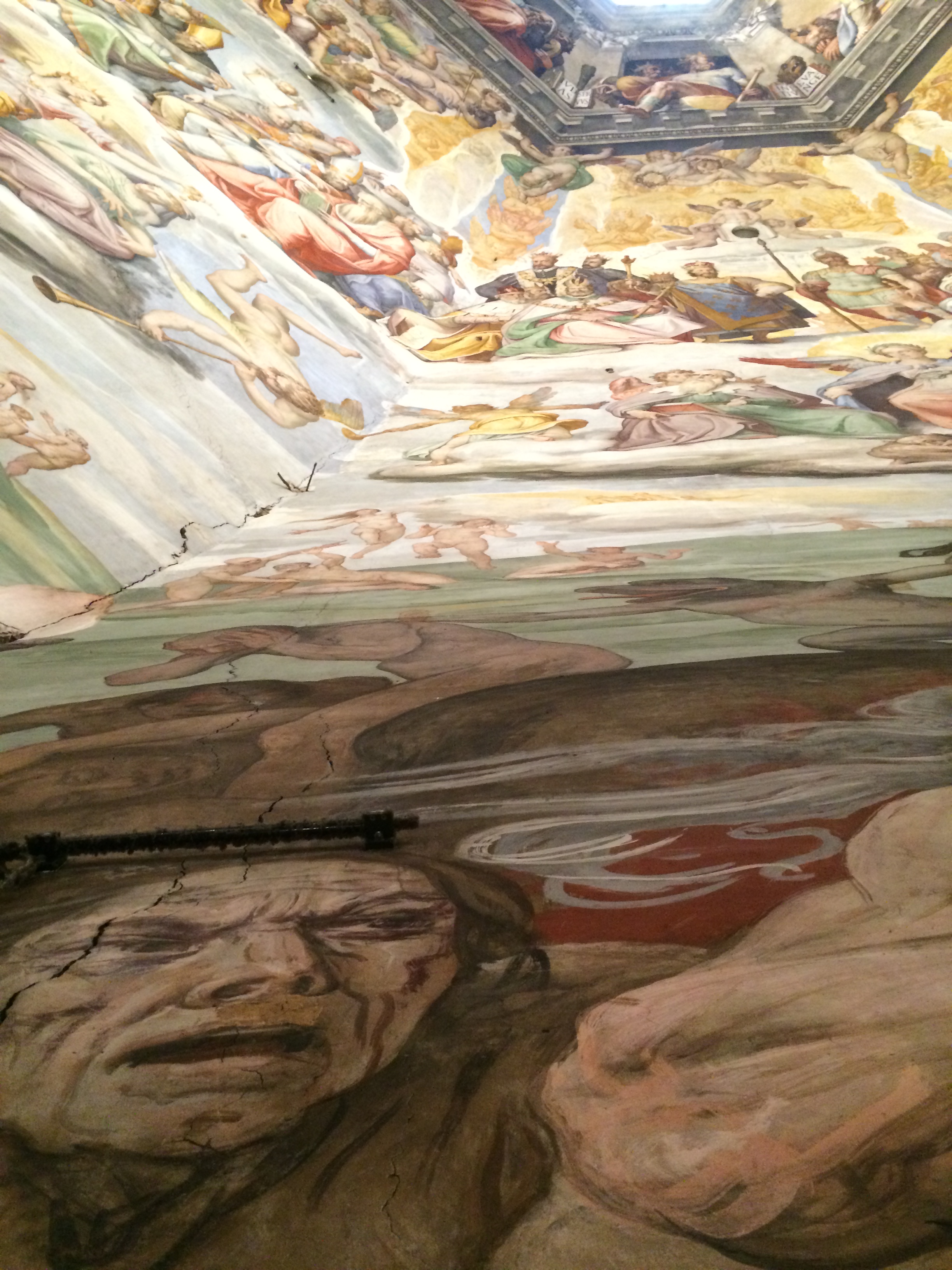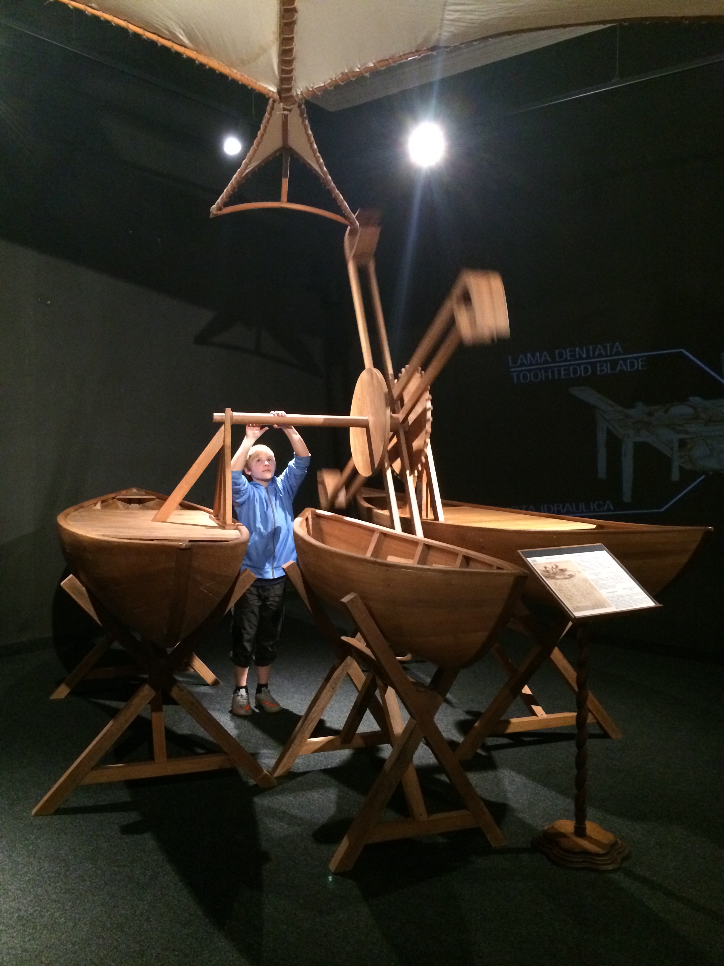 Afterwards, we were stymied by the Zono Traffico Limitado (see ITALY PART I) and ended up parking 50,000 miles away, but we finally arrived at the adorable AirBnB in a convenient location yet in a “real” neighborhood and away from the hordes of tourists. The kind host subsequently accompanied me to repark our car in a FREE parking zone very close by (behind Boboli Gardens)! Awesome. Anyway, I love Florence – THE epicenter of the Renaissance – and we could have spent even more than two days/three nights there… but even there, we were shocked by the tourist crowds. Getting tickets ahead of time to the Uffizi and the Accademia (to see the David) was critical. Best things we did in Florence: 1. The Bargello museum, which guidebooks and people say is “not a priority.” (advance tickets are not necessary because of this). We loved it – it’s a beautiful setting, no crowds, and the kids truly enjoyed the sculpture (due to their knowledge of Greek & Roman gods thanks to Percy Jackson) and the suits of armor and weapons collection. 2. Climbing the Duomo – worth getting here early (or right before it closes). The views are great from the top, but even better is getting to see the gorgeous frescoes on the inside of the Dome up close. PapaHatch and I are enjoying reading Brunelleschi’s Dome, by Ross King, to get a better sense of the amazing structure (a more interesting and engaging read that it sounds). 3. The Mercato Centrale, which has wonderful mini-restaurants within it for lunch as well as bright, colorful fruits and vegetables and other market offerings. 4. The Leonardo da Vinci Museum, while not the best museum I’ve ever seen, was a lot of fun for the kids. They loved seeing the life-size models (that you could touch!) of LDV’s innovative scientific designs, many of which are still in use today. The breadth of this guy’s interests, imagination and skills is incredible – a true Renaissance man and genius.