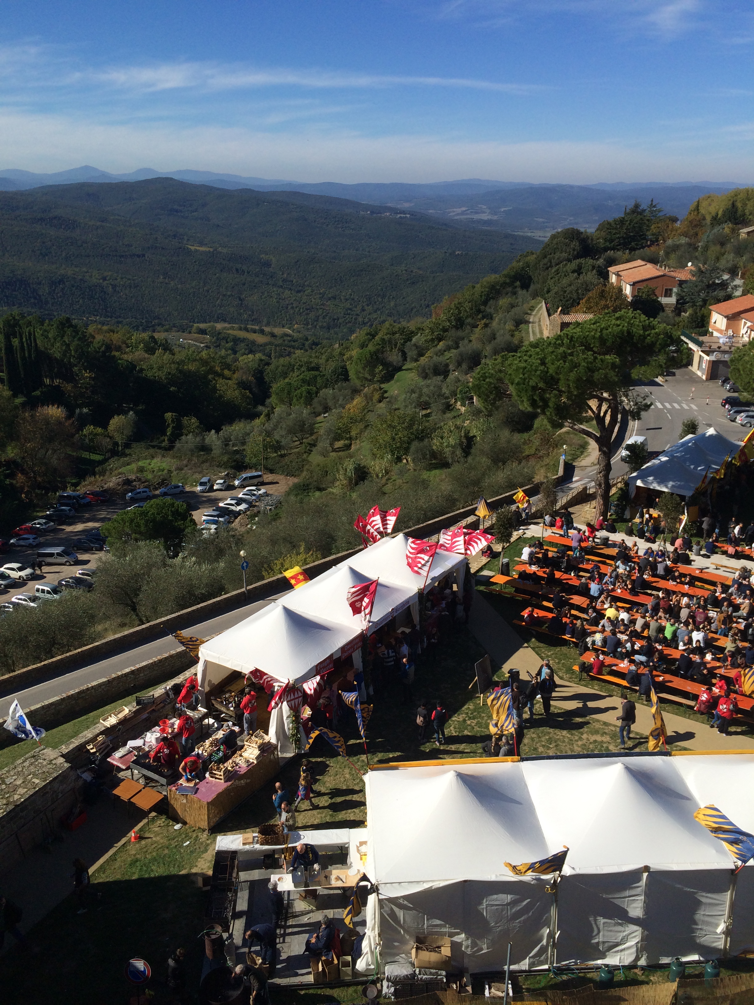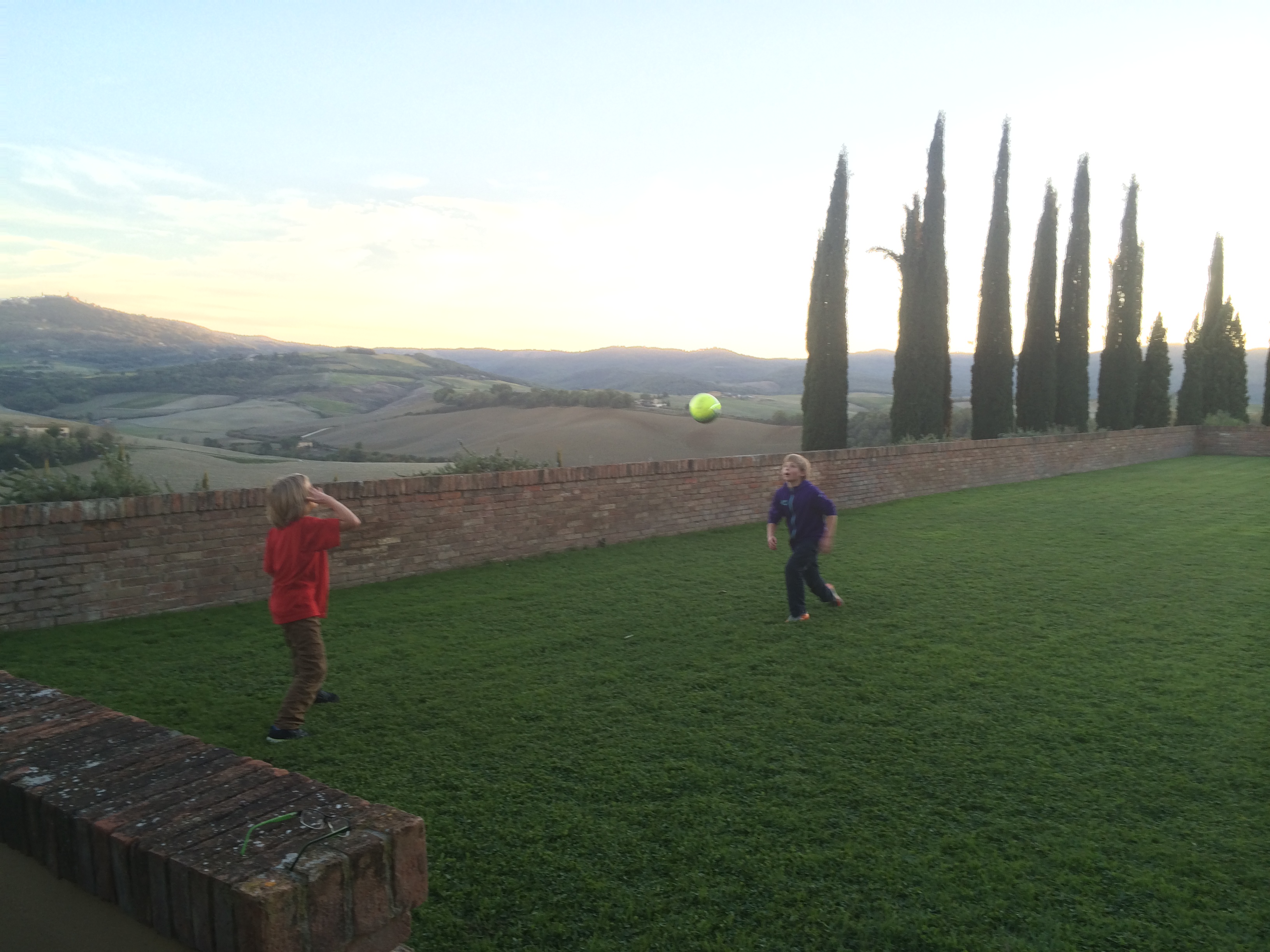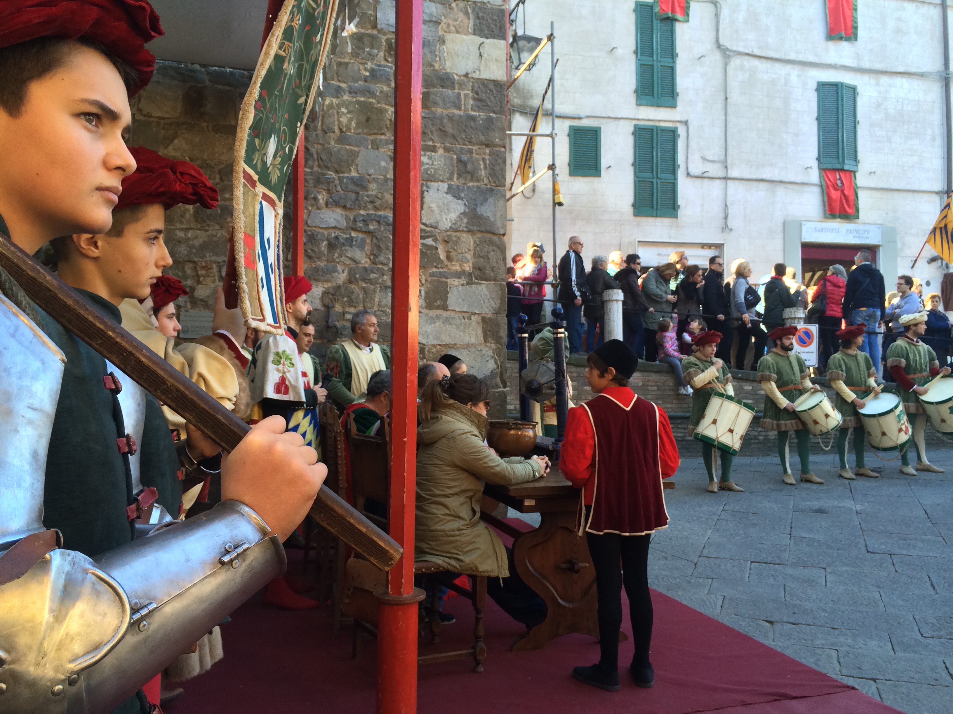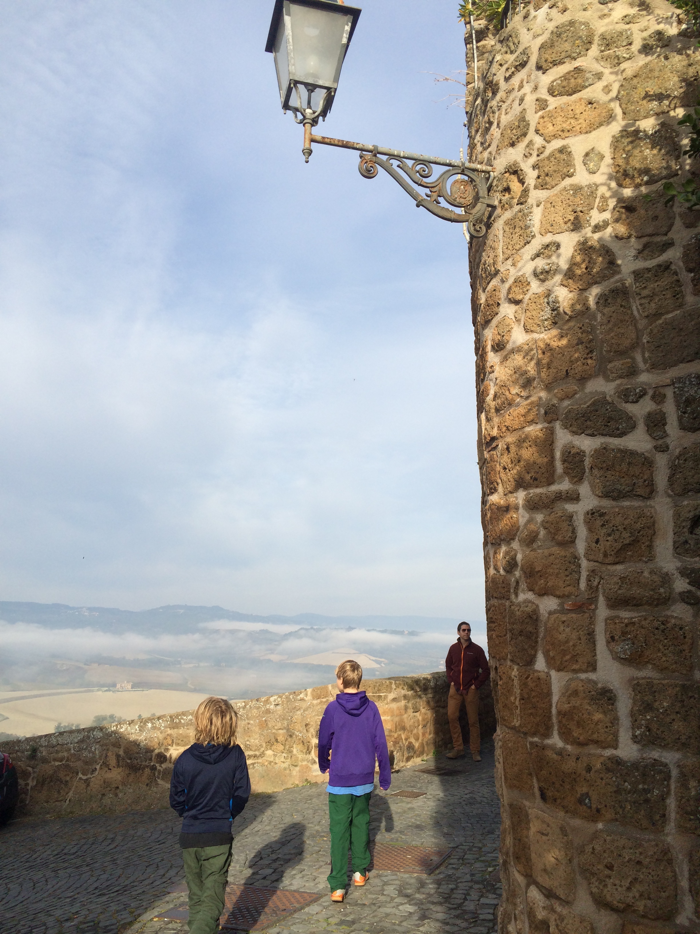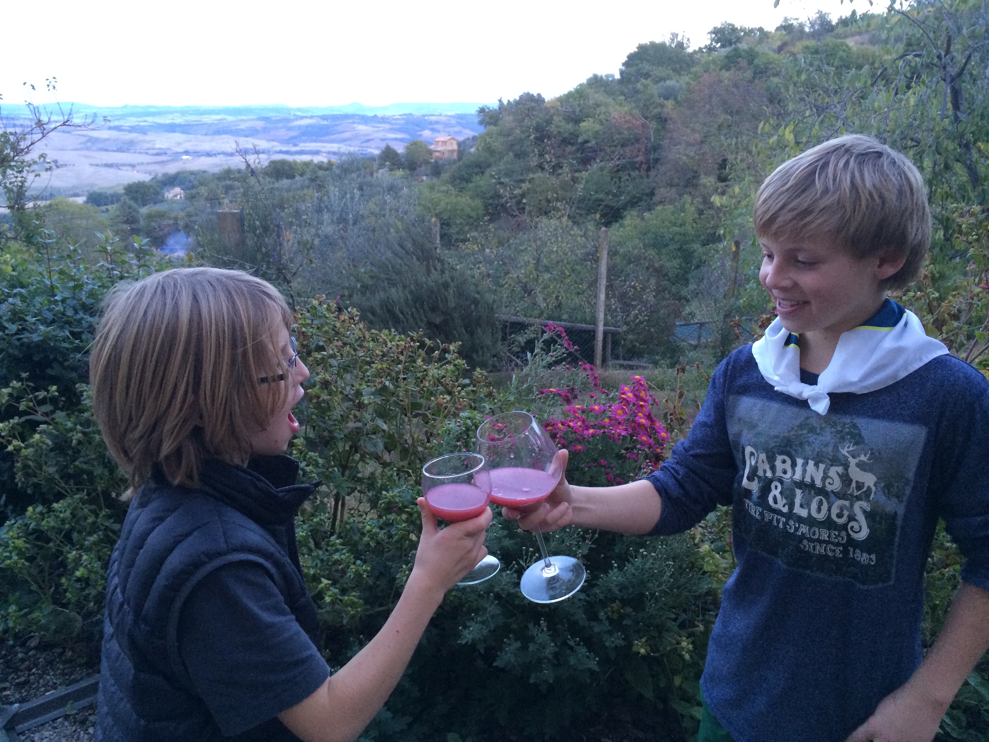 TUSCANY. My sister, who lived in Italy for almost 20 years, gave us some fantastic tips for our whole trip (thanks so much, S.!). The best was to alert me to a festival – La Sagra del Tordo (festival of the thrush) – that would be going on in Montalcino right when we’d be traveling. It was so cool! The festival itself was a lot of fun – the basic “festival formula” throughout Tuscany from what I gather is a competition between the historical four quarters of the town. In this case, three archers were selected from each quarter to compete against each other, thankfully hitting a fake wild boar rather than real thrushes. Completing the picture were traditional dances and food booths from each quarter serving great food and wine with a gorgeous hill country view. The boys decided we would each cheer for a different quarter (go Borghetto!). Montalcino is known primarily for its terrific red wine, called Brunello. We had a lovely tour and tasting at beautiful Altesino nearby – a better choice for us than the busy & more commercial Banfi winery. The boys enjoyed the accompanying snacks (one also enjoyed the wine!). They were inspired to later make their own version of Brunello with leftover San Giovese grapes in the vineyard next door to our lodging. We also had short but pleasant visits in San Gimignano and Montepulciano, appreciating the relative lack of crowds compared to what they are like in the summer. Two of our best meals were in these two towns, the favorite at Montepulciano’s Osteria del Borgo: gnocchi al guanciale di cinta con pomodorini e menta (gnocchi with local bacon, cherry tomatoes and subtle mint) – out of this world.