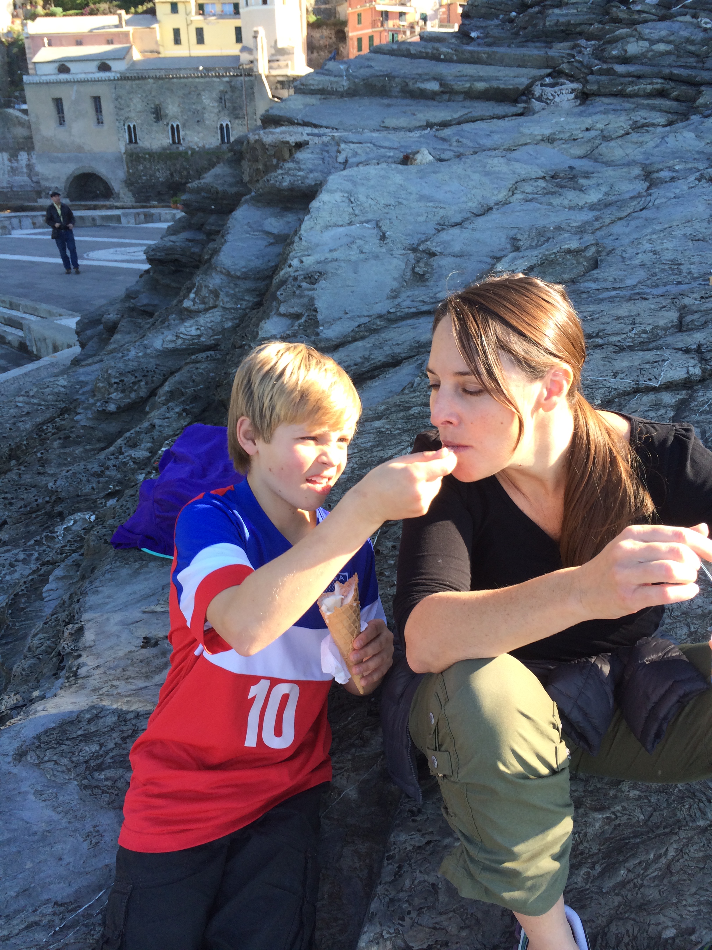 CINQUE TERRE. Ah, Cinque Terre (the 5 lands)… beautiful, touristy, not as polished as the Amalfi Coast (or so I hear), and very difficult to get to by car. We did not have the luxury of time here (we were doing the long drive back up to Switzerland, albeit this time along the pretty coastal areas). We stayed in Vernazza, called the “poster child” of Cinque Terre. A mere four years ago, at this exact time of year, it was devastated by the worst flooding in its history – 22 inches of water in four hours, damaging virtually all the buildings in the town with ten feet of mud and taking the lives of three residents. Today, you wouldn’t guess it, but knowing the history gave us a real appreciation for the town as more than just a pretty touristic stop. After a herculean community rebuilding effort, now the locals were all around, just living their lives – fishermen taking their boats out to sea, older women heading to daily mass at the seaside church, old men sitting on benches shooting the breeze, multiple generations hanging out with each other in the town square. They seemed to live in harmony with the tourists who invade their small village on a daily basis (it must be almost unbearable in the summer)… but perhaps the 2011 devastation really brought home the importance of tourist dollars to their survival. Regardless, they were surprisingly serene and generous with their smiles and greetings. I felt for them – supposedly, most of the families have lived there for generations, and I kept thinking how in just the last few decades, how much has changed for them (many credit/blame the Rick Steves effect). Tourism is a selfish but addictive beast. Apparently, Vernazza and the other four villages have tried to resist the lure of “selling out” (I guess it’s all relative); it’s true that the roads are pretty terrible and scary. If you plan to visit, I agree that the train is better (park at one of the villages and hike or take the train to the others). We parked… in the only lot available to non-residents, about ¾ of a mile UP the mountain. Worth it for us – we had perfect weather, a nice hike, a great meal (Belforte Restaurant) and really enjoyed the vibe of Vernazza.