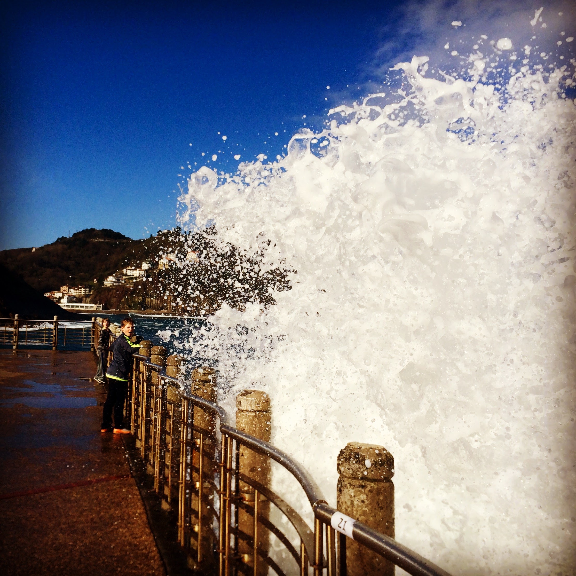 The next day, after the Easter Bunny managed to find my sons all the way in Spain, where he apparently does not visit Spanish children, we had a lovely day strolling along the long oceanside path, hitting the really cool aquarium and eating two awesome meals: a must-do tortilla (Spanish omelette) that you have to call ahead to order, traditional Basque steak (one of the best we’ve ever had), tomatoes, and roasted green peppers meal that was AWESOME at Bar Nestor (highly recommend) and another try at pintxos, but this time it was a set menu for Easter (at A Fuego Negro), featuring creative, fun pintxos. By the way, Bar Nestor has virtually one table that can be reserved; I highly recommend doing that. Otherwise, people do seem to enjoy just standing up at the tables outside, but with kids, this is more challenging.