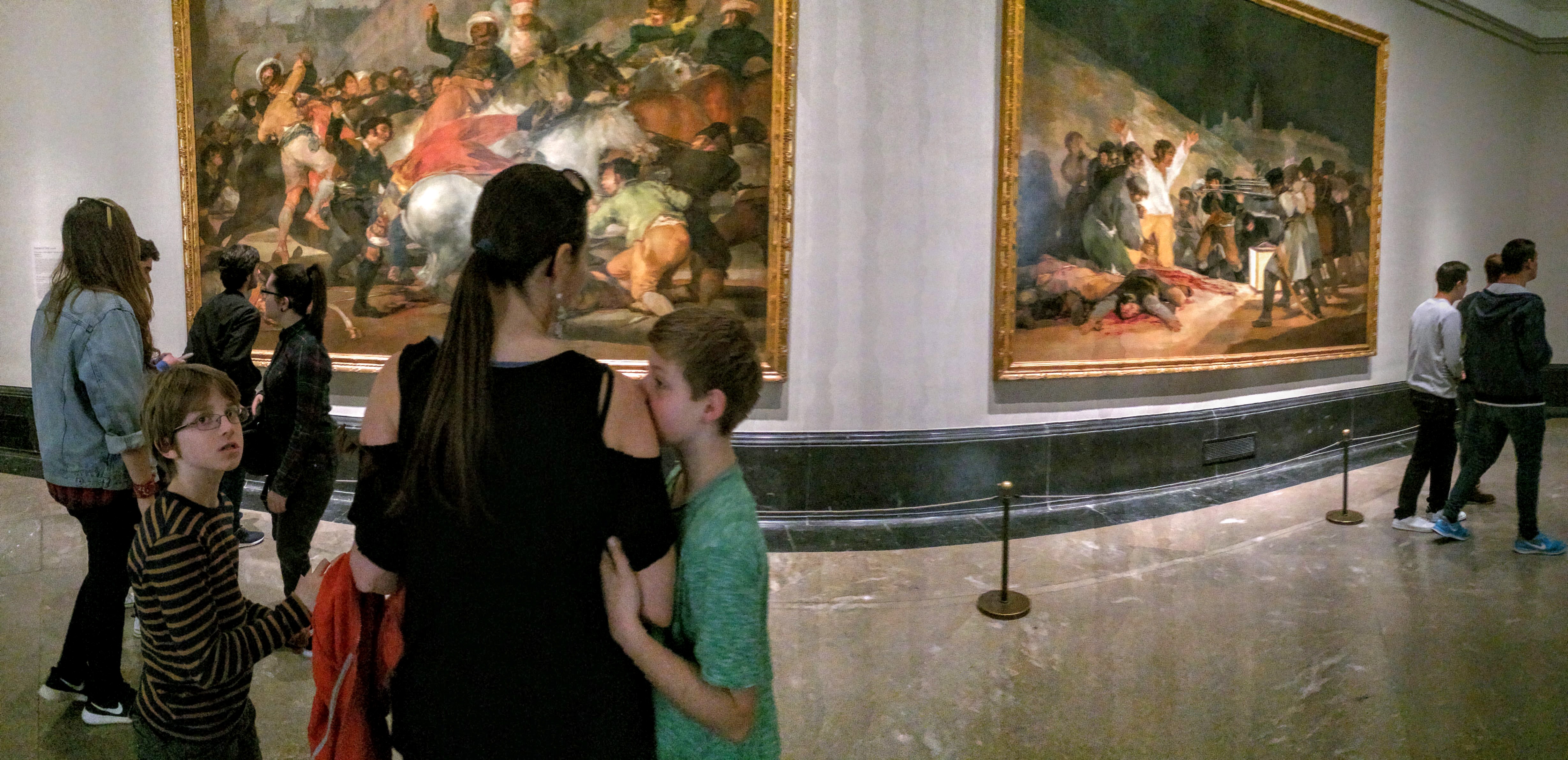 Upon arrival at the Prado, I was delighted to find their brochure listing – with pictures! – their most popular/important masterpieces. The boys then pored over it, taking turns (a.k.a. fighting over) picking 3-5 that they were responsible for finding. We’ve done this at several museums, and it really works to engage them (and their competitive natures). They feel pride when they find one of “their” works of art and take more genuine interest in it. In the end, we all agreed that Goya’s incredible Third of May, 1808 – and its precedent, the Second of May, 1808 – were our favorites. This is in part due to PapaHatch’s moving analysis, gleaned from his college minor in art history (thanks to another great teacher – thanks, Dr. Denton!).
