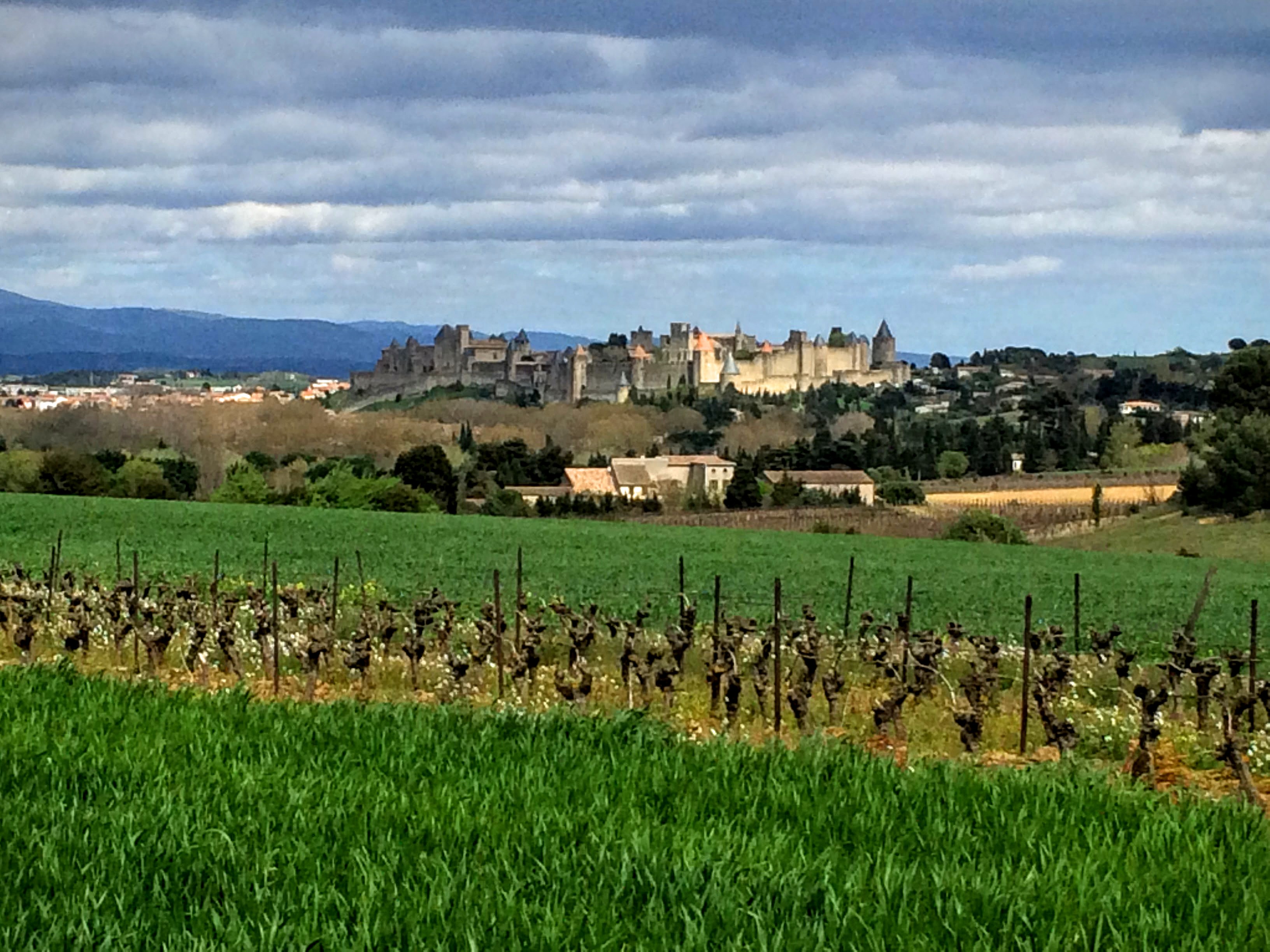 Our arrival into Carcassonne was late, but coming in at night with the walled medieval part of town (“La Cité”) all lit up makes an impressive welcome. For me, coming back to Carcassonne was like coming home; it holds a special place in my heart. When I was 13, my French mother drove me to school in Carcassonne from the small village where we lived, and I never tired of that view, right out of a storybook.