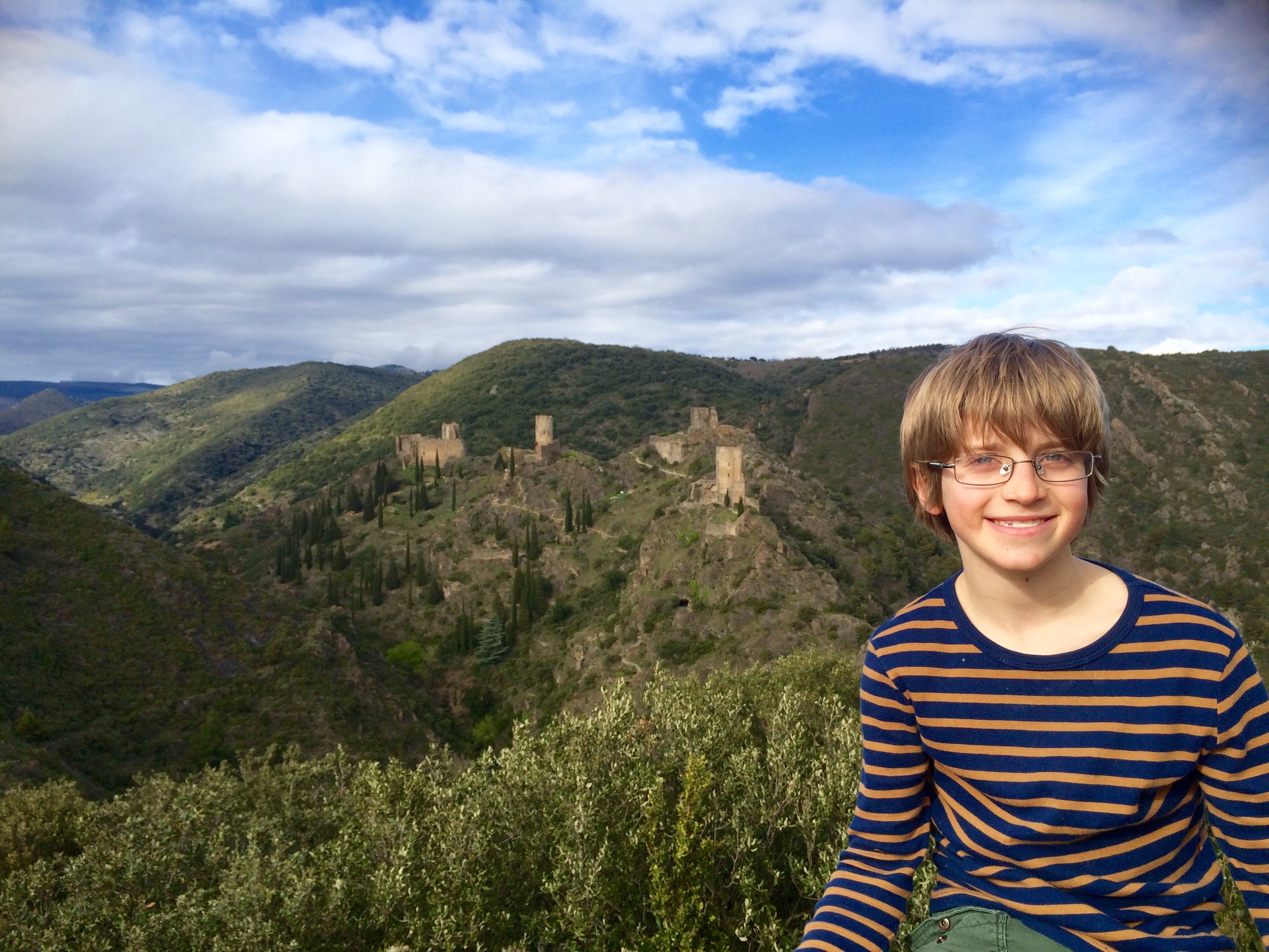 After lunch, we drove 20 minutes from Carcassonne to some great Cathar castle ruins: Lastours. My kids actually prefer their castles in ruins, especially ones with no regulations and few railings between them and certain death. They were in HEAVEN with these “three towers.” This region of France, the “Pays Cathare” and environs is highly underrated, in my opinion. I find the countryside divine, the people friendly, castles aplenty, the wine excellent, and the food delicious (if a little heavy, featuring cassoulet and plenty of duck fat to go around).