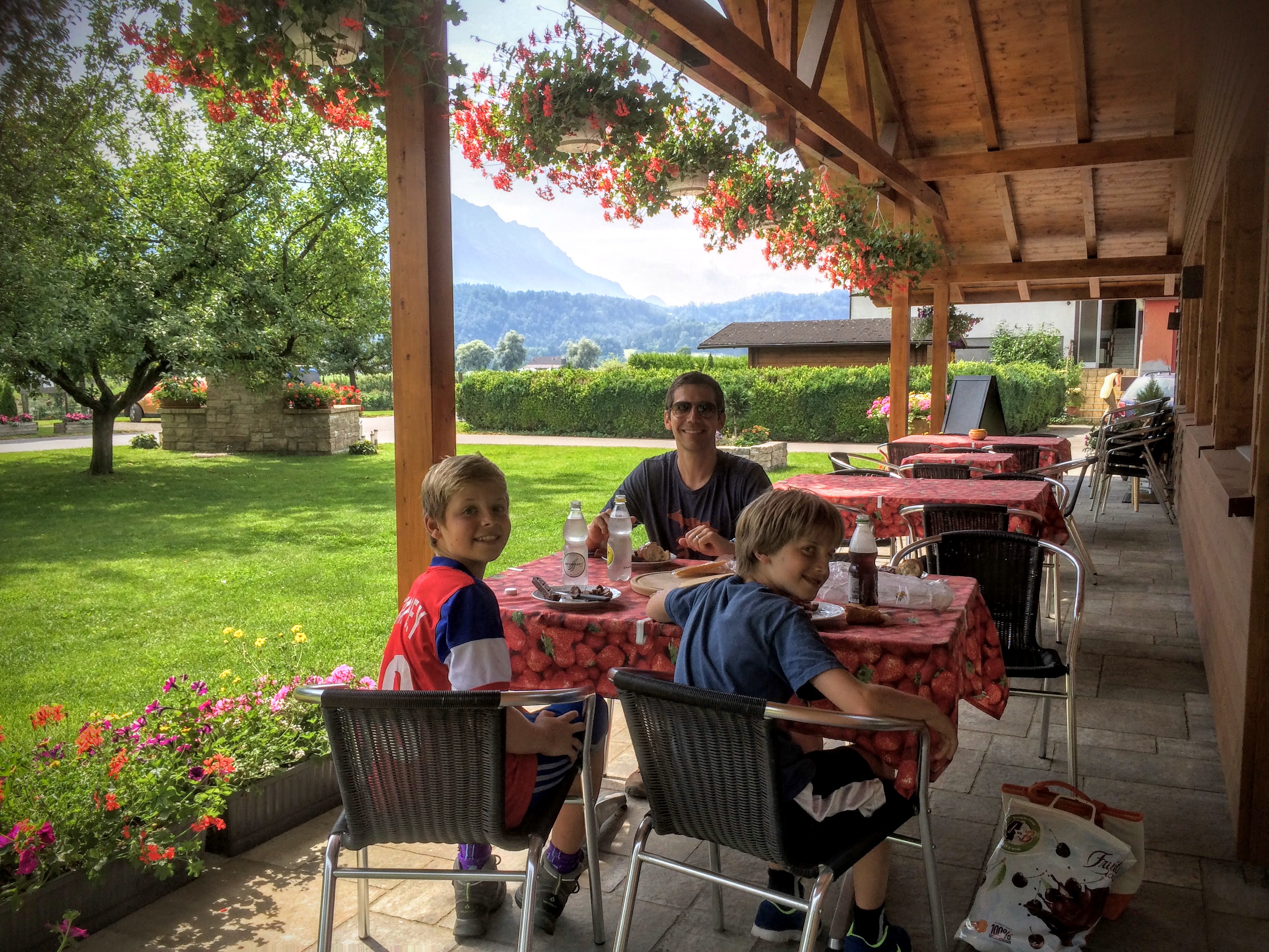 Just a couple of days after the boys’ last day of school, we set off on our 31-day road trip. The first day was a little nutty… we had decided to cram in a lot. Luzern was the last Swiss destination that ranked really highly on my list we hadn’t visited yet. So although an hour in no way does it justice, we stopped for breakfast and a walk. Beautiful! I see why people love it and am glad we made it there to at least get a sense of it. Then, just for fun, we stopped in the tiny country of Liechtenstein for lunch. Of course, it’s indistinguishable from Switzerland (at least to us). Instead of paying a fortune for a well-reviewed restaurant, I’d decided to stop at a farm to buy picnic items. Their selection was a bit paltry, but the quality was decent, and the setting was nice. And hey, we lunched in Liechtenstein!